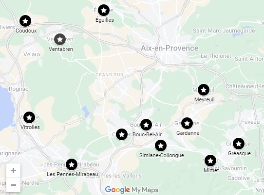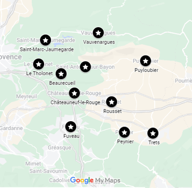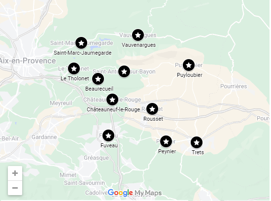 Pinèdes et collines, terres rouges, roches blanches, étendues de vignes, villages perchés et places ombragées de platanes, l'Est du Pays d'Aix-en-Provence a inspiré les grands peintres comme Cézanne ou Picasso. Ils ont puisé dans ces couleurs et se sont inspirés des reliefs et ont rendu hommage à notre Pays... Le sud de la montagne Sainte-Victoire, c'est l'invitation au voyage.