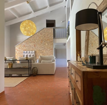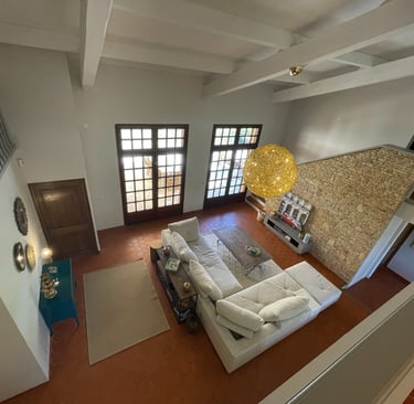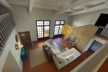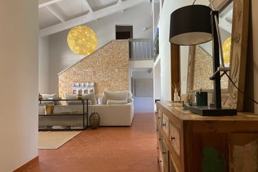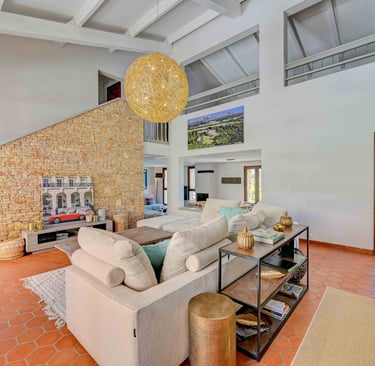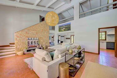 La maison offre un espace de vie spacieux de plus de 250m², composé d'un vaste hall d'entrée avec un vestiaire, un très grand séjour cathédrale, une cuisine équipée avec sa salle à manger, un petit coin salon avec cheminée ainsi qu'un espace lecture et jeux. L'espace nuit se compose de 5 chambres climatisées avec salles de bain/eau.