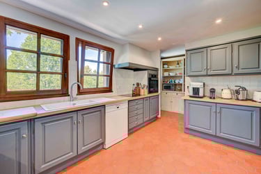 De plus, elle dispose L'arrière-cuisine est également très fonctionnelle, avec un vaisselier rempli d'une grande variété de vaisselle et de plats en nombre suffisant. On y trouve également une belle collection de verres et de couverts, parfaits pour recevoir des convives.