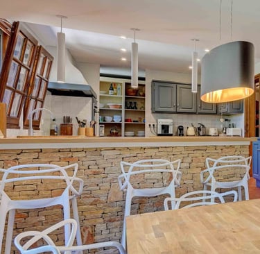 Rénovée avec beaucoup de soin au printemps 2022, en respectant l'ancien tout en y apportant un touche de modernité et de confort; la maison comprend tous les équipements de qualité nécessaires pour passer de belles vacances.