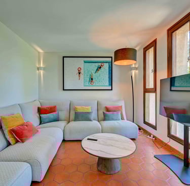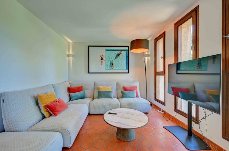 Le petit salon, chaleureusement aménagé, offre une vue imprenable sur la sainte victoire. C'est l'endroit idéal pour regarder la télévision, se lover au coin du feu avec un bon livre pendant les soirées d'hiver.