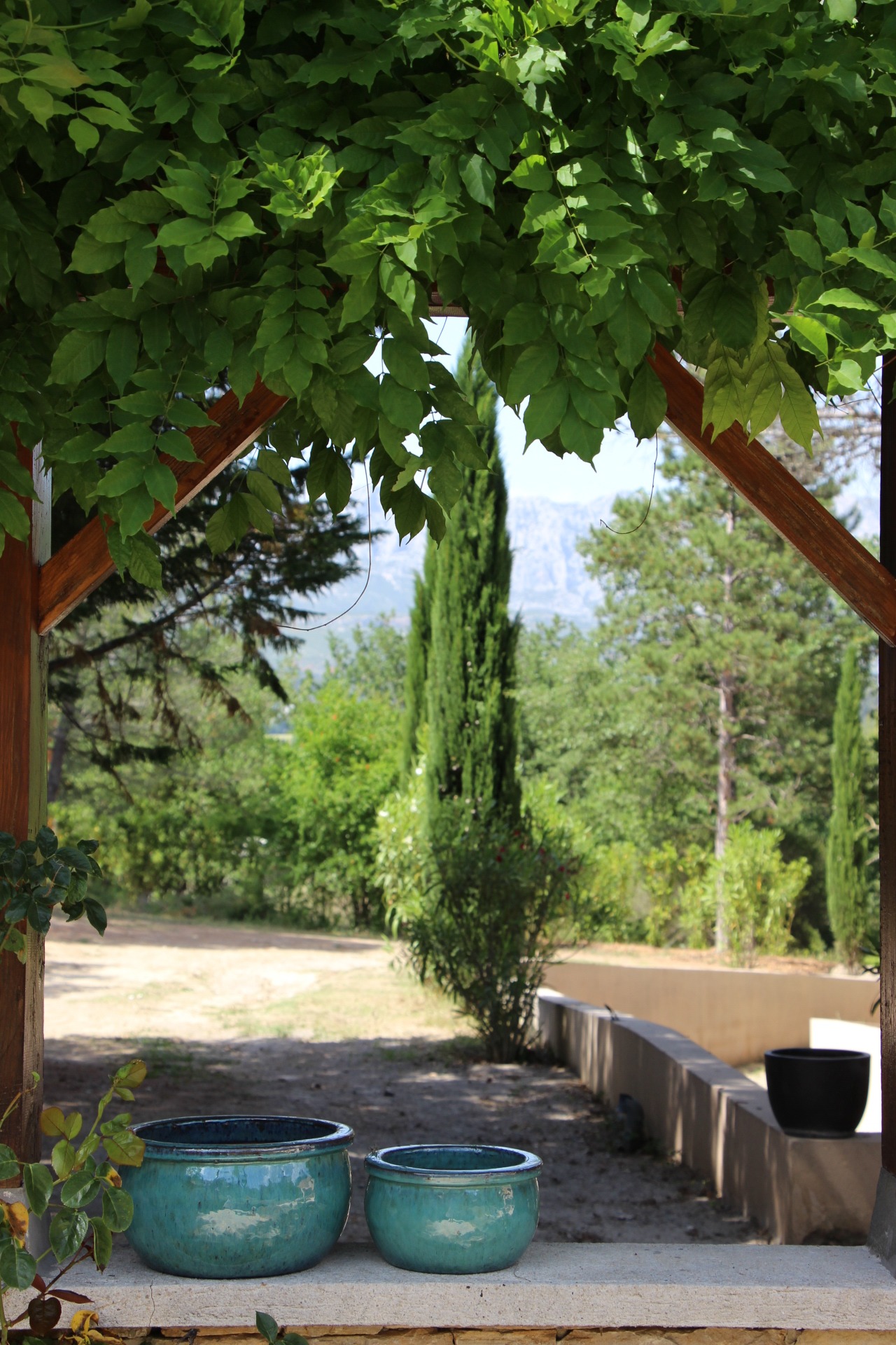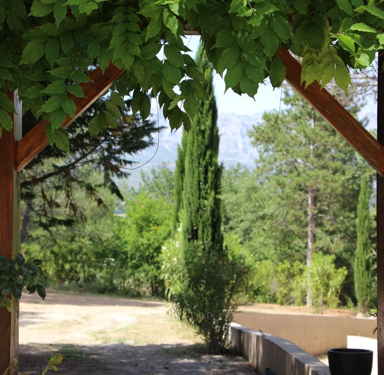 Le terrain de boules est situé sous les arbres chênes typiques de la région, en haut des restanques. Il offre une vue imprenable sur la sainte victoire et dispose d'un coin salon de jardin pour se détendre.